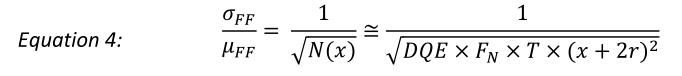 R2 = 0.999625 Figure 9: Fit to standard deviation as a function of pixel size using Equation 4, parameterized with QEeff and r.