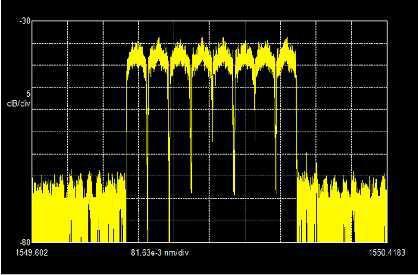 不同信道的 10Gb/s RZ, NRZ以及一路 100GB/s Pol- MuxQPSK 同時表征.
