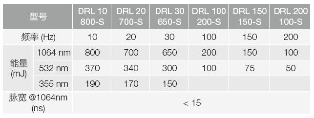 DRL 系列雙棒燈泵納秒脈沖光器選型表