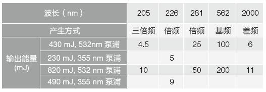 常用染料可提供420 ~ 950nm 的可調諧范圍。通過倍頻、三倍頻、和頻方式可獲得200nm ~ 420nm 連續可調諧的輸出;通過差頻可擴展至4500nm 紅外輸出。