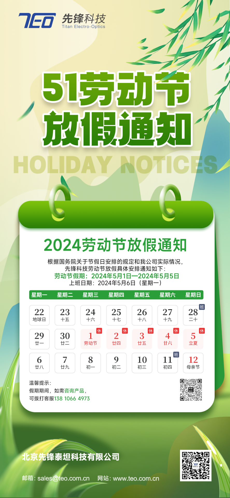 先鋒科技勞動節(jié)放假具體安排通知如下:勞動節(jié)假期:2024年5月1日-2024年5月5日 上班日期:2024年5月6日(星期一)