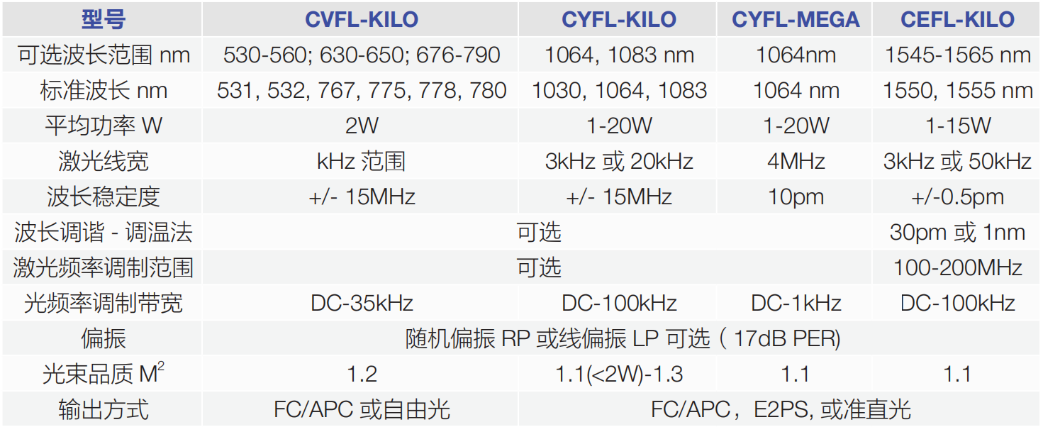 KILO MEGA 系列連續(xù)波窄線寬光纖激光器 :