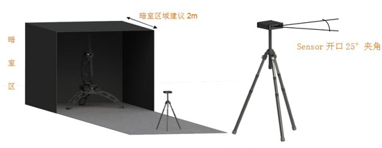 通常在進(jìn)行光測(cè)量時(shí),需要一個(gè)完全黑暗的房間。 但是對(duì)于LabSpion來(lái)說(shuō),整個(gè)房間并不是必須的,因?yàn)閭鞲衅魇褂昧艘粋€(gè)特殊的方向傳感器,這意味著只有測(cè)角儀區(qū)域黑暗就足夠了。如下右圖所示,光譜儀傳感器方向性(25°開口)非常強(qiáng),基本上只有燈具一側(cè)的背景墻壁的反光會(huì)影響測(cè)量。因此,LabSpion能做到只需要測(cè)角儀光源部分所在的區(qū)域是暗室就能完美的完成測(cè)量,暗室的墻壁可以刷黑漆,也可以用黑色的褶皺窗簾,這對(duì)于傳統(tǒng)分布式光度計(jì)是革命性的,客戶可以省去大筆建造暗室的費(fèi)用。