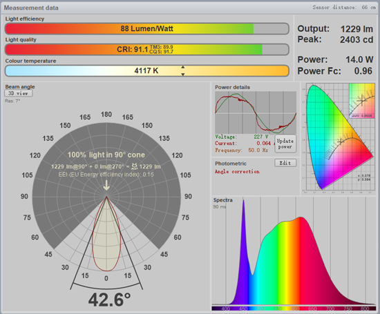 | CRI/CQS/TM-30效果圖 | 否 | 是 | Viso使用光譜儀測(cè)試,同時(shí)軟件支持分析三種顯色品質(zhì) |