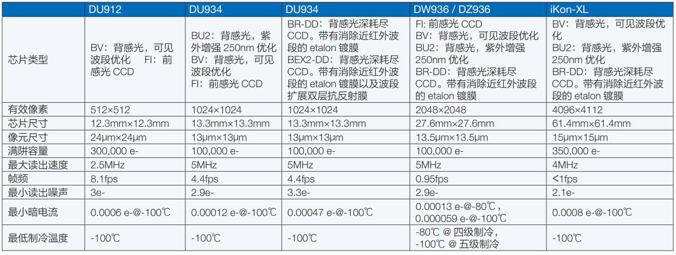 英國Andor的iKon系列CCD相機(jī)參數(shù):