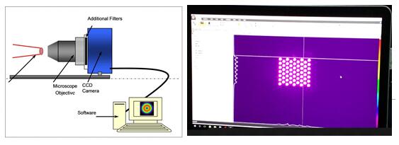 激光光束測量儀,主要測量模組經過DOE分束之后的多光束的光斑大小均勻性、能量分布均勻性。可以得到光斑的尺寸大小、能量分布、2D、3D圖、可輸出多種格式的測量報告