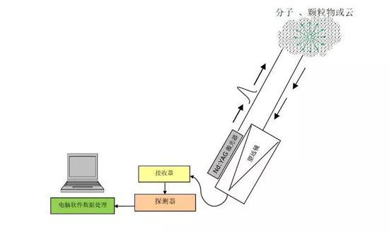 激光雷達(LIDAR:Light Detection and Ranging)是利用Nd:YAG激光器出光打到大氣中,通過測量激光打到顆粒物或者氣體分子上的后向散射光的消光比或者偏振狀態變化,從而分析出大氣中的顆粒物或氣體成分,以及它們的分布高度、濃度等情況。