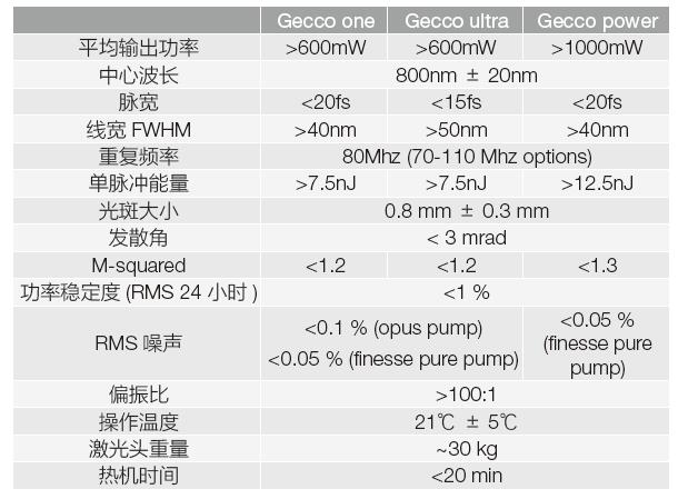 鈦寶石超快振蕩器Gecco系列規格