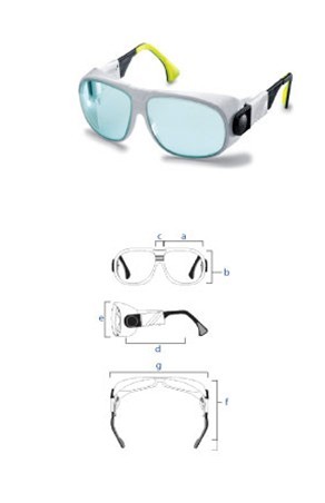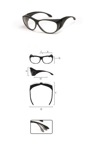 產品編號 :F06 鏡架分小,中,大三種規格,對周邊激光輻射提供極大的保障。 柔軟的耳片提供更多的穩定性和舒適性。