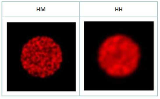 圖5 標(biāo)準(zhǔn)(HM)與高均勻(HH)產(chǎn)品對(duì)TEM00激光的勻化效果