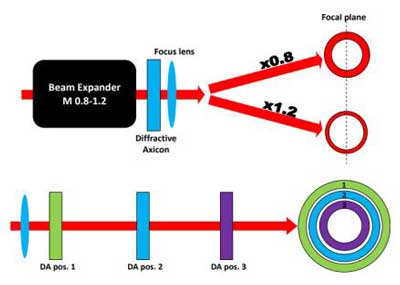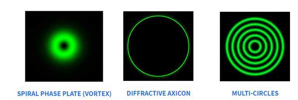 如光源為多模激光,需要產(chǎn)生環(huán)形結(jié)構(gòu),可采用衍射錐透鏡。