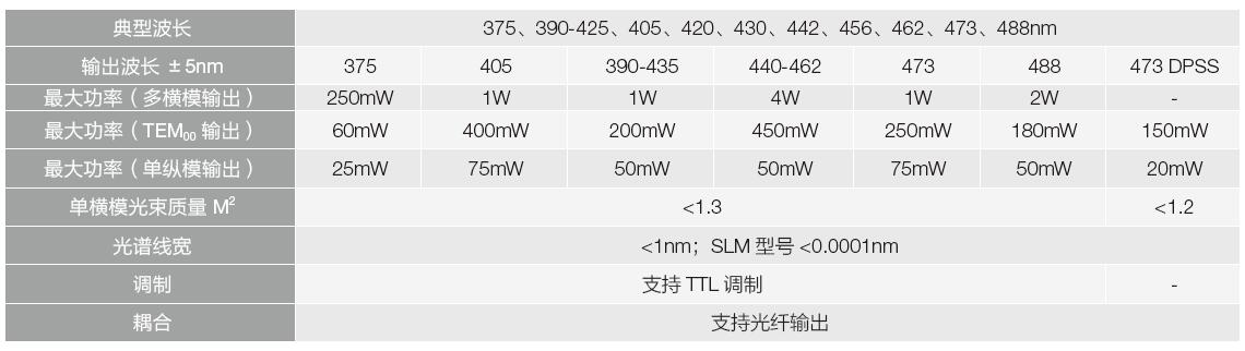 連續(xù)輸出藍紫激光器 375nm ~ 490nm