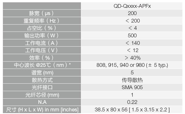 光纖耦合輸出QCW 二極管陣列特點: