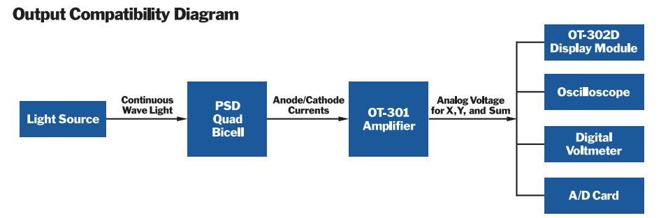OT-301位置傳感放大器是市場上處理任何位置傳感檢測器(PSD)的電流 輸出最簡單、最精確的方法。