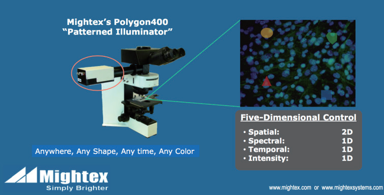 Polygon400 DSI集成了當今最先進的光空間調制器和高功率LED,該LED擁有獨特的集光率保持技術能傳遞高強度的帶有衍射極限分辨率的照明圖案。