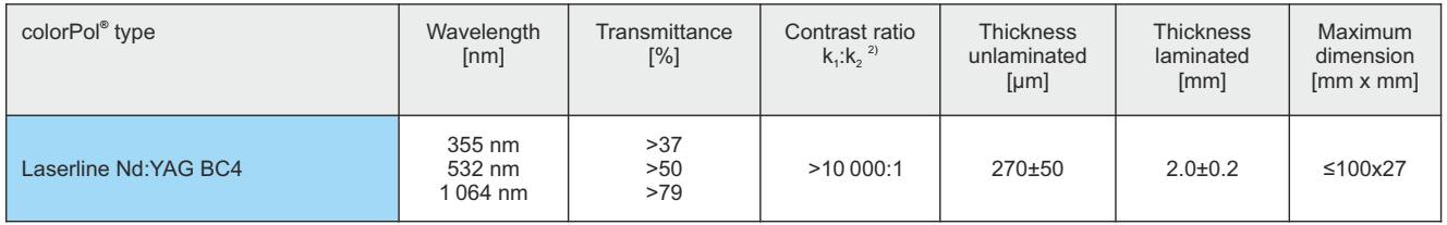 colorPol? 偏振片是由帶有銀納米顆粒的高強(qiáng)度鈣鈉玻璃制成的二向色玻璃偏振片,偏振片可用于紫外波長范圍(340nm-420nm)和VIS、NIR、MIR波長范圍(440nm-5.0 μm),大入射角±20°,偏振軸精度高,透過率最高可以達(dá)到96%,消光比最高可以達(dá)到100000:1