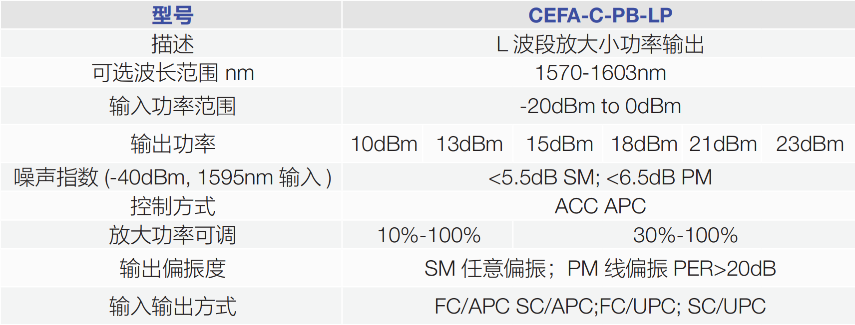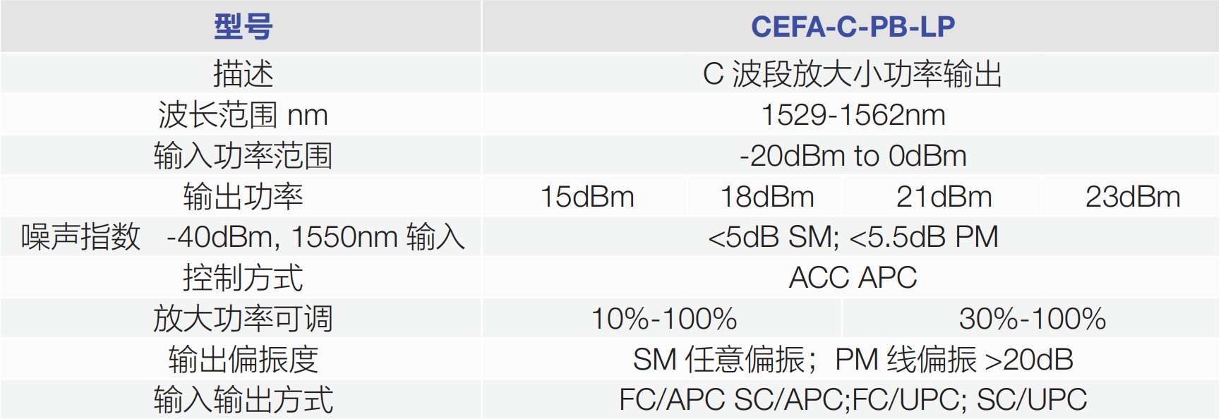Keopsys 公司提供各種光纖放大器,不同型號可涵蓋可見光,1 μm, 1.5μm,2μm 不同波段,根據(jù)不同的輸入信號強度,輸出信號強度, 增益大小,通道數(shù)提供精準對應的產(chǎn)品。