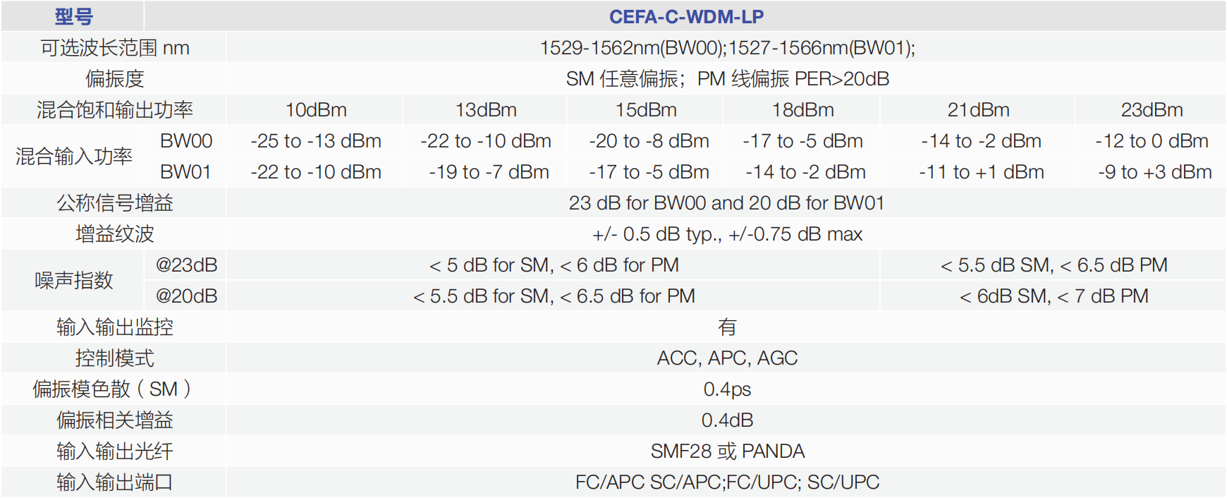C 波段多通道 WDM 放大器