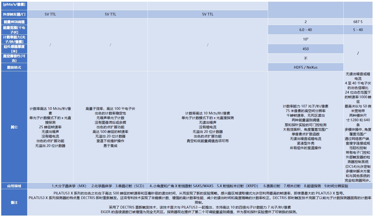 搭配的探測器選項2(Dectris)